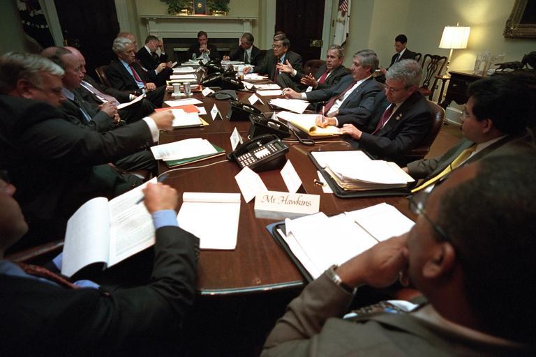 Keywords: washington d.c. dc u.s. national archives usnationalarchives 9/11 911 president george w. bush presidentgeorgewbush nara:arcid=5997321 george w. bush presidential library georgewbushpresidentiallibrary insurance representatives insurancerepresentatives george w. bush georgewbush roosevelt room rooseveltroom white house whitehouse people indoor Original Caption: President George W. Bush meets with advisers in the Roosevelt Room of the White House to discuss the impact of the terrorist attacks on the airline and insurance industries. Participants include: Vice President Dick Cheney, Transportation Secretary Norman Mineta, Deputy Secretary Michael Jackson, Andy Card, Josh Bolten, Nick Calio, Glenn Hubbard, Mitch Daniels, Al Gonzales, Larry Lindsey, Ari Fleischer, Albert Hawkind, Karl Rove, Lewis Libby and others. U.S. National Archives’ Local Identifier: P7478-08 Created By: President (2001-2009 : Bush). Office of Management and Administration. Office of White House Management. Photography Office. (01/20/2001 - 01/20/2009) From: Photographs Related to the George W. Bush Administration, compiled 01/20/2001 - 01/20/2009 Production Dates: 09/17/2001 Persistent URL: arcweb.archives.gov/arc/action/ExternalIdSearch?id=5997321 Repository: George W. Bush Library (Lewisville, TX) Access Restrictions: Unrestricted Use Restrictions: Unrestricted Original Caption: President George W. Bush meets with advisers in the Roosevelt Room of the White House to discuss the impact of the terrorist attacks on the airline and insurance industries. Participants include: Vice President Dick Cheney, Transportation Secretary Norman Mineta, Deputy Secretary Michael Jackson, Andy Card, Josh Bolten, Nick Calio, Glenn Hubbard, Mitch Daniels, Al Gonzales, Larry Lindsey, Ari Fleischer, Albert Hawkind, Karl Rove, Lewis Libby and others. U.S. National Archives’ Local Identifier: P7478-08 Created By: President (2001-2009 : Bush). Office of Management and Administration. Office of White House Management. Photography Office. (01/20/2001 - 01/20/2009) From: Photographs Related to the George W. Bush Administration, compiled 01/20/2001 - 01/20/2009 Production Dates: 09/17/2001 Persistent URL: arcweb.archives.gov/arc/action/ExternalIdSearch?id=5997321 Repository: George W. Bush Library (Lewisville, TX) Access Restrictions: Unrestricted Use Restrictions: Unrestricted