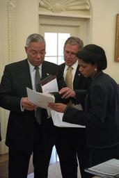 | Keywords: washington d.c. dc u.s. national archives usnationalarchives 9/11 911 president george w. bush presidentgeorgewbush nara:arcid=5997330 george w. bush presidential library georgewbushpresidentiallibrary george w. bush georgewbush national security adviser nationalsecurityadviser condoleezza rice condoleezzarice secretary of state secretaryofstate colin powell colinpowell oval office ovaloffice white house whitehouse russian foreign minister russianforeignminister indoor suit Original Caption: Shortly before meeting Russian Foreign Minister Igor Ivanov, President George W. Bush looks over a brief with Secretary of State Colin Powell and National Security Adviser Condoleezza Rice in the Oval Office.  U.S. National Archives’ Local Identifier: P7570-12  Created By: President (2001-2009 : Bush). Office of Management and Administration. Office of White House Management. Photography Office. (01/20/2001 - 01/20/2009)  From: Photographs Related to the George W. Bush Administration, compiled 01/20/2001 - 01/20/2009  Production Dates: 09/19/2001  Persistent URL: arcweb.archives.gov/arc/action/ExternalIdSearch?id=5997330  Repository: George W. Bush Library (Lewisville, TX)  Access Restrictions: Unrestricted Use Restrictions: Unrestricted Original Caption: Shortly before meeting Russian Foreign Minister Igor Ivanov, President George W. Bush looks over a brief with Secretary of State Colin Powell and National Security Adviser Condoleezza Rice in the Oval Office.  U.S. National Archives’ Local Identifier: P7570-12  Created By: President (2001-2009 : Bush). Office of Management and Administration. Office of White House Management. Photography Office. (01/20/2001 - 01/20/2009)  From: Photographs Related to the George W. Bush Administration, compiled 01/20/2001 - 01/20/2009  Production Dates: 09/19/2001  Persistent URL: arcweb.archives.gov/arc/action/ExternalIdSearch?id=5997330  Repository: George W. Bush Library (Lewisville, TX)  Access Restrictions: Unrestricted Use Restrictions: Unrestricted  |