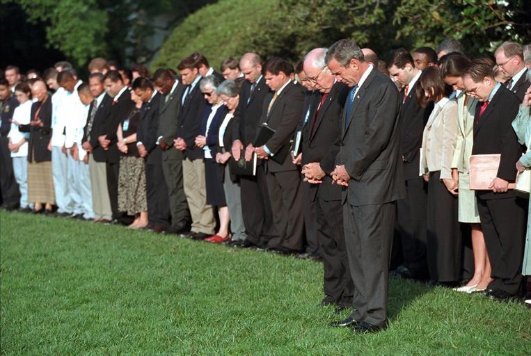 Keywords: washington d.c. dc u.s. national archives usnationalarchives 9/11 911 president george w. bush presidentgeorgewbush nara:arcid=5997322 george w. bush presidential library georgewbushpresidentiallibrary president george w. bush georgewbush vice president vicepresident dick cheney dickcheney moment of silence momentofsilence white house whitehouse south lawn southlawn 2001 outdoor Original Caption: President George W. Bush and Vice President Dick Cheney are joined by White House staff members as they observe a moment of silence on the White House South Lawn. U.S. National Archives’ Local Identifier: P7486-02 Created By: President (2001-2009 : Bush). Office of Management and Administration. Office of White House Management. Photography Office. (01/20/2001 - 01/20/2009) From: Photographs Related to the George W. Bush Administration, compiled 01/20/2001 - 01/20/2009 Production Dates: 09/18/2001 Persistent URL: arcweb.archives.gov/arc/action/ExternalIdSearch?id=5997322 Repository: George W. Bush Library (Lewisville, TX) Access Restrictions: Unrestricted Use Restrictions: Unrestricted Original Caption: President George W. Bush and Vice President Dick Cheney are joined by White House staff members as they observe a moment of silence on the White House South Lawn. U.S. National Archives’ Local Identifier: P7486-02 Created By: President (2001-2009 : Bush). Office of Management and Administration. Office of White House Management. Photography Office. (01/20/2001 - 01/20/2009) From: Photographs Related to the George W. Bush Administration, compiled 01/20/2001 - 01/20/2009 Production Dates: 09/18/2001 Persistent URL: arcweb.archives.gov/arc/action/ExternalIdSearch?id=5997322 Repository: George W. Bush Library (Lewisville, TX) Access Restrictions: Unrestricted Use Restrictions: Unrestricted |