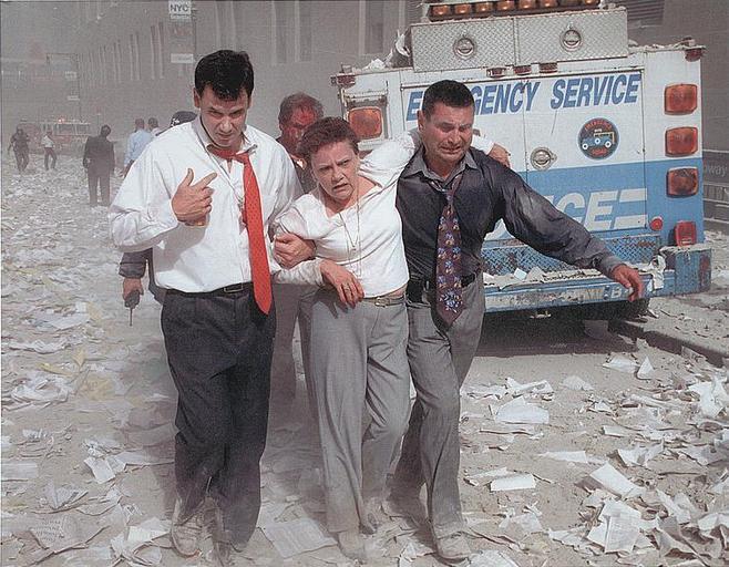 Keywords: 911 victims helping one another.jpg Deux hommes aident une femme blessée dans une rue jonchée de papiers et de cendres après la chute des tours de la WTC en Two men assisting and walking with an injured woman down a street littered with paper and ashes following the September 11th terrorist attack on the World Trade Center New York City cropped to show the photo only with no border Title Two men assisting and walking with an injured woman down a street littered with paper and ashes following the September 11th terrorist attack on the World Trade Center New York City / Don Halasy Creator s Halasy Don photographer Date Created/Published c2001 Medium 1 photograph digital print inkjet color Reproduction Number LC-DIG-ppmsca-01814 digital file from original Rights Advisory No restrictions on publication For information see Don Halasy http //lcweb loc gov/rr/print/res/286_hala html Call Number LOT 13521-8 no 2 P P Repository Library of Congress Prints and Photographs Division Washington D C 20540 USA Notes Title devised by Library Staff Signed in pencil Inkjet digital print made on Epson Professional Media archival matte paper via scan of an original 35mm film negative Copyright by Don Halasy NY Post Unprocessed in PR 13 CN 2002 076 Don Halasy 247 Subjects World Trade Center New York N Y --Disasters--2000-2010 September 11 Terrorist Attacks 2001 Disaster victims--New York State --New York--2000-2010 Format Inkjet prints--Color--2000-2010 Photographs--Color--2000-2010 Collections Miscellaneous Items in High Demand Part of Photographs from Ground Zero World Trade Center Photo Exhibit held at the Bolivar Arellano Gallery New York City http //lcweb2 loc gov/service/pnp/ppmsca/01800/01814v jpg Don Halasy 09/11/2001 See http //www loc gov/rr/print/res/286_hala html Don Halasy Aftermath of 9/11 in New York City Rescue and recovery effort after the September 11 attacks September 2001 photographs Fashion in 2001 Wounded people Men and women People of the United States in 2001 Helping Side hugs |