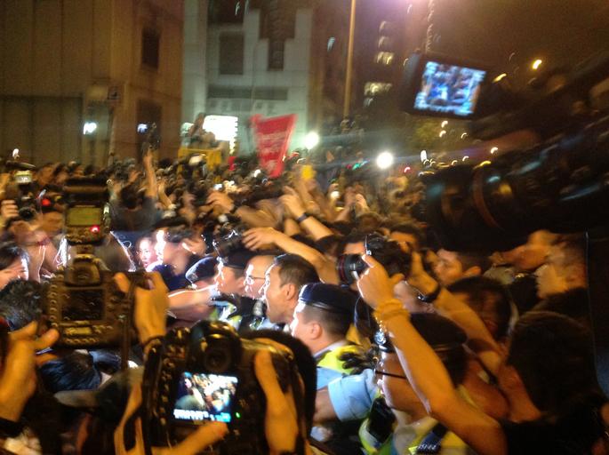 Keywords: 香港各界發起反人大釋法大遊行和集會 91.jpg zh-tw 中 人大常委 11 7日將就香港 年新政兩位議員宣誓風波,對基 法 宣誓 例宣布釋法內容之際,香港民間人權陣線星 天發起各界 反對釋法大遊行 和集 ,抗議人大 香港高等法院審理 宣誓風波司法覆核案 間,主動對基 法第104 釋法,破壞香港獨立的司法制度 香港民陣發起反釋法大遊行後,數以千計的示威 繼續遊行到西環的中聯辦抗議人大釋法 8點半左右,示威 手舉雨傘再次沖擊警方防線,警方則狂噴辣椒噴劑還擊 警方調派大批警員增援,並將配備防暴頭盔的警員派至 線與示威 對峙 警方不斷呼籲示威 持冷 ,不要 擊警方防線,要求示威 盡快離開 9點前, 中聯辦外與警察對峙的示威 突然撤離,輕 西 警署外的徳輔道西和西邊街道口,現場雙向交 中斷, 場自2014年雨傘運動後的佔領行動 醞 中,現場至少 幾千之 十多分鐘後,警方開始廣 播,要求佔路人士離開 示威 9點過後佔據了中聯辦外 段德輔道,並 中聯辦後 外與警方防線展開推撞,警方用辣椒噴 還擊將示威 防線推後 示威 不斷呼喊反對釋法 警方 中聯辦西邊的 光街路口佈署第二道防線,並 警員從路旁的西 警署裡向警察傳遞防暴盾牌 步部署防線 目前還不清楚警方何時清場 2016-11-06 19 51 05 http //www voachinese com/a/hk-protest-20161106/3583208 html 海彥 other versions Custom license marker 2016 11 06 PD-USGov-VOA Occupy Sai Wan |