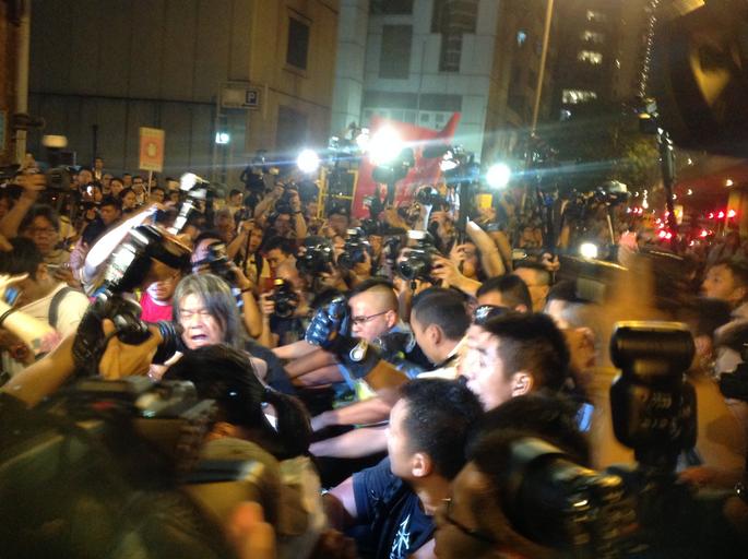 Keywords: 香港各界發起反人大釋法大遊行和集會 95.jpg zh-tw 中 人大常委 11 7日將就香港 年新政兩位議員宣誓風波,對基 法 宣誓 例宣布釋法內容之際,香港民間人權陣線星 天發起各界 反對釋法大遊行 和集 ,抗議人大 香港高等法院審理 宣誓風波司法覆核案 間,主動對基 法第104 釋法,破壞香港獨立的司法制度 香港民陣發起反釋法大遊行後,數以千計的示威 繼續遊行到西環的中聯辦抗議人大釋法 8點半左右,示威 手舉雨傘再次沖擊警方防線,警方則狂噴辣椒噴劑還擊 警方調派大批警員增援,並將配備防暴頭盔的警員派至 線與示威 對峙 警方不斷呼籲示威 持冷 ,不要 擊警方防線,要求示威 盡快離開 9點前, 中聯辦外與警察對峙的示威 突然撤離,輕 西 警署外的徳輔道西和西邊街道口,現場雙向交 中斷, 場自2014年雨傘運動後的佔領行動 醞 中,現場至少 幾千之 十多分鐘後,警方開始廣 播,要求佔路人士離開 示威 9點過後佔據了中聯辦外 段德輔道,並 中聯辦後 外與警方防線展開推撞,警方用辣椒噴 還擊將示威 防線推後 示威 不斷呼喊反對釋法 警方 中聯辦西邊的 光街路口佈署第二道防線,並 警員從路旁的西 警署裡向警察傳遞防暴盾牌 步部署防線 目前還不清楚警方何時清場 2016-11-06 19 52 23 http //www voachinese com/a/hk-protest-20161106/3583208 html 海彥 other versions Custom license marker 2016 11 06 PD-USGov-VOA Occupy Sai Wan |