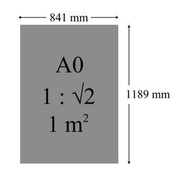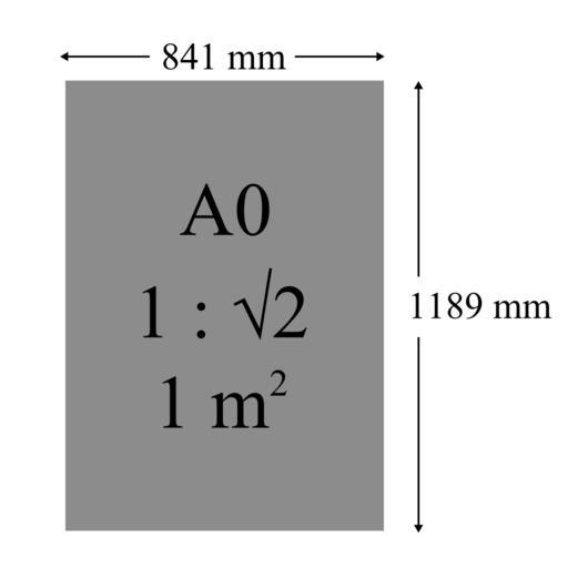 MAKE A MEME View Large Image A0 dimensions ISO 216.svg w ISO 216 A_0 dimensions <br /> A_0 has the area of 1 m 2 and the ratio of edges 1 sqrt 2 1 1 41421356 In reality the dimenstion of edges are rounded to 841 mm × 1189 mm and so the area is 0 999949 m 2 The exact ...