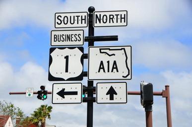 Keywords: a1a sign route florida east coast road arrow destination direction drive highway icon information metal crossroads sign signpost street symbol text traffic transportation way white
