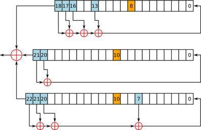 | Keywords: A5-1 GSM cipher.svg A5-1 GSM encryption stream cypher diagram with the three shift register One register is shifted when the orange bit has the majority over the three orange bits Then one bit is inserted to a XOR between the blue bits Schéma du A5/1 et ses trois registres à décalage Un registre est décalé si le bit en orange correspond à la majorité des trois bits oranges On insère alors un bit correspondant à un XOR entre les bits en bleu A5-1 png 2009-12-01 13 55 UTC A5-1 png User Matt Crypto derivative work Tsaitgaist <span class signature-talk >talk</span> vectorization tsaitgaist A5-1 png inkscape original upload log This image is a derivative work of the following images File A5-1 png licensed with PD-user 2005-06-25T12 13 10Z Dake 800x517 52219 Bytes <nowiki>A5/1 algorithm Public Domain </nowiki> Uploaded with derivativeFX Symmetric cipher diagrams Stream Cipher Ciphers GSM_Standard |