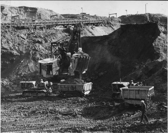 | Keywords: A 5-yard electric shovel loading 10-yard 'buggies' in the east excavation - NARA - 294088.jpg Scope and content Photograph from Volume Two of a series of photo albums documenting the construction of the Grand Coulee Dam and related work on the Columbia Basin Project General notes 294088 Local identifier Department of the Interior Bureau of Reclamation Engineering and Research Center 05/18/1981 - 03/04/1988 NARA's Rocky Mountain Region Denver NRGA Building 48 Denver Federal Center West 6th Avenue and Kipling Street Denver CO 80225-0307 1935-10-09 Record group Record Group 115 Records of the Bureau of Reclamation 1889 - 2008 Record group ARC 444 Photograph albums compiled 1903 - 1972 Series ARC 293611 File unit File unit ARC Variant control numbers NAIL Control Number NRG-115-CONSTPHO85006-COLBASIN2799 Other versions <gallery> File A 5-yard electric shovel loading 10-yard 'buggies' in the east excavation - NARA - 294088 tiff tif </gallery> NARA-cooperation PD-USGov Category Construction of the Grand Coulee Dam Construction of the Grand Coulee Dam Excavators Tracked vehicles |