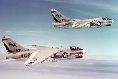 | Keywords: A-7B Corsairs VA-215 in flight in 1971.jpeg Two U S Navy Ling-Temco-Vought A-7B Corsair II BuNo 154538 154454 from Attack Squadron VA-215 Barn Owls in flight VA-215 was assigned to Carrier Air Wing 19 CVW-19 aboard the aircraft carrier USS Oriskany CVA-34 for a deployment to Vietnam from 14 May to 18 December 1971 Note that the guns of both aircraft have been fired http //collections naval aviation museum/emuwebdoncoms/pages/doncoms/AdvQuery php U S Navy National Museum of Naval Aviation photo No http //collections naval aviation museum/emuwebdoncoms/pages/doncoms/Display php irn 51092 QueryPage 2Femuwebdoncoms 2Fpages 2Fdoncoms 2FAdvQuery php 2011 003 243 028 1971 U S Navy PD-USGov-Military-Navy A-7B Corsair II Attack Squadron 215 United States Navy Vietnam War in 1971 |