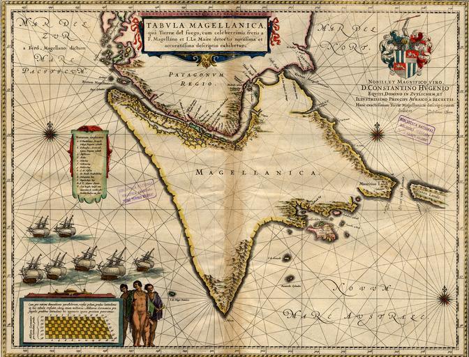 | Keywords: A Chart of Magellan by the Route of Tierra del Fuego WDL3973.png  Artwork ru Блау Виллем Янсзон 1571-1638 fr Blaeu Willem Janszoon 1571-1638 en Blaeu Willem Janszoon 1571-1638 zh 布劳 威廉·扬斯宗 1571-1638 pt Blaeu Willem Janszoon 1571-1638 ar بلاو ويليم جانزون 1571-1638 es Blaeu Willem Janszoon 1571-1638 ru Ка та  агелланики по пути следования че ез Огненную Землю fr Une carte de Magellan par la route de Terre de Feu en A Chart of Magellan by the Route of Tierra del Fuego zh  幅 经由火 群岛  麦哲伦国的 图 pt Um Gráfico do Estreito de Magalhães pela Rota da Terra do Fogo ar خريطة ماجلان عبرطريق تييرا ديل فويغو ru Эту ка ту  агелланики земли к югу от  агелланова п олива составил Виллем Янсзон Блау ведущий голландский ка тог аф и издатель ка т а также основатель семьи выдающихся ка тог афов в кото ую входили его сыновья Джоан и Ко нелис Блау  одился в  иде ландах в 1571 г в 1594 1596 гг он учился в Дании у аст онома Тихо Б аге и сове шенствовал свои навыки по изготовлению инст ументов и глобусов По возв ащении в Амсте дам он основал семейную ка тог афическую компанию В 1608 г он был назначен на должность главного гид ог афа Vereenigde Oost-Indische Compagnie Объединенной Ост-Индской компании кото ую он занимал до самой сме ти в 1638 г Эта ка та 1640 г свидетельствует о специализации Блау в мо ской ка тог афии В нижнем левом углу изоб ажена г уппа из семи плывущих ко аблей помещенных на ка туш в кото ом п иведен масштаб ка ты в немецких милях Ка туш подде живает г уппа из т ех патагонцев В д угих углах ка ты указаны названия Атлантического Тихого и Южного океанов Ка та посвящена Константейну Гюйгенсу ниде ландскому поэту и дипломату кото ый вместе со своим более известным б атом Х истианом отк ывшим спутник Сату на  Титан занимался созданием телескопов и изучением небесных светил <br>Отк ытия и исследования;  агелланов п олив Чили и А гентина ; Огненная земля А гентина и Чили fr Cette carte de « Magellanica » la terre située au sud du détroit de Magellan est l'œuvre de Willem Janszoon Blaeu un cartographe et éditeur de cartes néerlandais majeur également fondateur d'une famille de cartographes remarquables dont ses fils Joan et Cornelis Né aux Pays-Bas en 1571 Blaeu étudia au Danemark entre 1594 et 1596 auprès de l'astronome Tycho Brahe où il apprit à fabriquer des globes et des instruments De retour à Amsterdam il fonda l'entreprise de cartes familiale En 1608 il fut nommé hydrographe en chef de la Vereenigde Oost-Indische Compagnie la Compagnie néerlandaise des Indes orientales un poste qu'il conserva jusqu'à sa mort en 1638 Cette carte de 1640 reflète la spécialisation de Blaeu dans la cartographie maritime Le coin inférieur gauche montre un groupe de sept bateaux à voile positionnés sur un cartouche à l'intérieur duquel l'échelle figure en miles allemands Le cartouche est porté par un groupe de trois Patagons Les noms des océans australs Atlantique et Pacifique sont indiqués dans l'autre coin de la carte La carte est dédiée à Constantijn Huygens poète et diplomate néerlandais qui avec son frère Christiaan plus célèbre pour avoir découvert Titan le satellite de Saturne se consacrait lui aussi à la fabrication de télescopes et à l'étude des cieux <br>Découverte et exploration; Magellan détroit de Chili et Argentine ; Terre de Feu Argentine et Chili en This map of Magellanica the land south of the Strait of Magellan is by Willem Janszoon Blaeu a leading Dutch cartographer and map publisher and the founder of a family of distinguished mapmakers that included his sons Joan and Cornelis Born in the Netherlands in 1571 between 1594 and 1596 Blaeu studied in Denmark under the astronomer Tycho Brahe where he developed skills as an instrument and globe maker Returning to Amsterdam he founded the family map company In 1608 he was appointed chief hydrographer of the Vereenigde Oost-Indische Compagnie United East Indian Company a position he held until his death in 1638 This 1640 map reflects Blaeu s specialization in maritime cartography The lower left corner depicts a group of seven sailing ships positioned over a cartouche in which the scale is given in German miles The cartouche is supported by a group of three Patagonians The names of the Atlantic Pacific and southern oceans are indicated in the other corners of the map The map is dedicated to Constantijn Huygens a Dutch poet and diplomat who with his more famous brother Christiaan the discoverer of Saturn s moon Titan also built telescopes and studied the skies <br>Discovery and exploration; Magellan Strait of Chile and Argentina ; Tierra del Fuego Argentina and Chile zh 这幅 麦哲伦之  的 图,是 麦哲伦海峡南 的大陆,由威廉·扬斯宗·布劳 绘,他是 名  领先的荷兰制图师和 图出版商,也是包括他的儿子琼和科内利斯 内的 个 出的 图制  家族