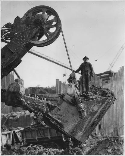 | Keywords: A close-up view of a five-yard dipper on electric shovel - NARA - 294280.tif Scope and content Photograph from Volume Two of a series of photo albums documenting the construction of the Grand Coulee Dam and related work on the Columbia Basin Project General notes 294280 Local identifier Department of the Interior Bureau of Reclamation Engineering and Research Center 05/18/1981 - 03/04/1988 NARA's Rocky Mountain Region Denver NRGA Building 48 Denver Federal Center West 6th Avenue and Kipling Street Denver CO 80225-0307 1936-04-01 Record group Record Group 115 Records of the Bureau of Reclamation 1889 - 2008 Record group ARC 444 Photograph albums compiled 1903 - 1972 Series ARC 293611 File unit File unit ARC Variant control numbers NAIL Control Number NRG-115-CONSTPHO85006-COLBASIN21008 yes Other versions <gallery> File A close-up view of a five-yard dipper on electric shovel - NARA - 294280 jpg jpg </gallery> NARA-cooperation PD-USGov Construction of the Grand Coulee Dam Excavators Excavator buckets NARA TIF images with categorized JPGs |