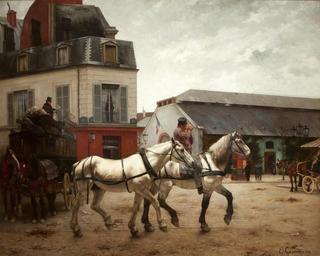 | Keywords: A Coach Stop on the Place de Passy - Edmond Georges Grandjean - Google Cultural Institute.jpg en A Coach Stop on the Place de Passy Edmond Georges Grandjean Google Cultural Institute 67 1/2 x 84 inches Dixon Gallery and Garden 1882 https //www google com/culturalinstitute/asset-viewer/a-coach-stop-on-the-place-de-passy/JwFDV1JSaFarHQ Google Art Project Edmond Georges Grandjean 1844-1908 other versions Custom license marker 2015 02 14 PD-old-100 Uploaded with UploadWizard Paintings uploaded by Chris Woodrich Carriages in art 1882 paintings from France |