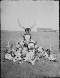 Keywords: A collection of buffalo, elk, deer, mountain sheep and wolf skulls and bones near Fort Sanders. Albany County, Wyoming. - NARA - 516956.jpg Scope and content General notes 516956 Local identifier 57-HS-348 Department of the Interior General Land Office U S Geological and Geographic Survey of the Territories 1874 - 06/30/1879 NARA-Author Jackson William Henry 1843-1942 Photographer 1116078 <br /> Still Picture Records Section Special Media Archives Services Division NWCS-S National Archives at College Park 8601 Adelphi Road College Park MD 20740-6001 1870 Record group Record Group 57 Records of the U S Geological Survey 1839 - 2008 Record group ARC 386 Hayden Survey William H Jackson Photographs compiled 1869 - 1878 Series ARC 516606 File unit File unit ARC Variant control numbers NAIL Control Number NWDNS-57-HS-348 Other versions <gallery> File A_collection_of_buffalo _elk _deer _mountain_sheep_and_wolf_skulls_and_bones_near_Fort_Sanders _Albany_County _Wyoming _-_NARA_-_516956 tif tif File A_collection_of_buffalo _elk _deer _mountain_sheep_and_wolf_skulls_and_bones_near_Fort_Sanders _Albany_County _Wyoming _-_NARA_-_516956 jpg jpg </gallery> NARA-cooperation PD-USGov Mammal skulls Bison skulls Cervus canadensis Antlers Fort Sanders Historic District 1870 in Wyoming Albany County Wyoming Animal bones |
