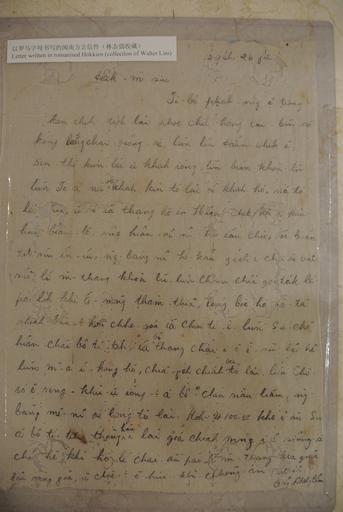 | Keywords: A collection of letter written in Peh Oe Ji in Singapore.jpg en A letter written in POJ romanized Hokkien provided by descendant of Tan Boon Hak 陈文学 a cousin of Tan Kah Kee who donated it to the Brownies for the exhibition 2013-07-17 11 03 45 Bukit Brown Our Roots Our Heritage Ông pheh lîm cc-zero Uploaded with UploadWizard Letters written messages | ||||