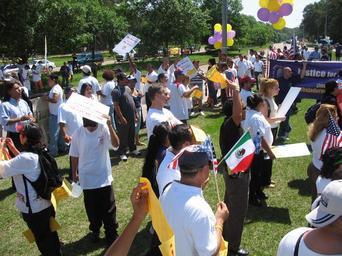 Keywords: A day without immigrants - protesters, balloons.jpg s shall come later own 2006-05-01 Kyle Moore Own work all rights released Public domain Great American Boycott