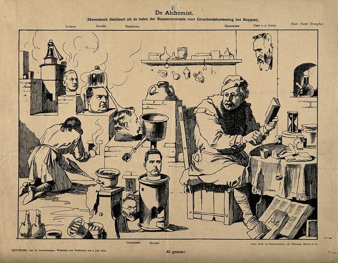 Keywords: A despairing alchemist in his laboratory; symbolising Heemsk Wellcome V0011925.jpg Artwork Creator David Teniers II A despairing alchemist in his laboratory; symbolising Heemskerk's relation to his coalition cabinet Reproduction of a lithograph by J Braakensiek 1912 <p>Iconographic Collections<br> Keywords Lohman; Cort van der Linde; Pieter Jelles Troelstra; Johan Braakensiek; David Teniers; Nolens; Abraham Kuyper; Oppenheim; Theodorus Heemskerk Library reference ICV No 12191 Photo number V0011925 Full Bibliographic Record http //catalogue wellcomelibrary org/record b1175586 object history exhibition history credit line Wellcome Images http //wellcomeimages org/indexplus/obf_images/bb/78/ec831671b1df9e750931a1967007 jpg Gallery http //wellcomeimages org/indexplus/image/V0011925 html accession number PD-old-auto-1923 1940 Images uploaded by Fæ Wellcome V0011925 jpg Files from Wellcome Images check needed V0011925 jpg Pieter Jelles Troelstra Johan Braakensiek Works after David Teniers the Younger Abraham Kuyper Alchemists in art Lithographs in the Wellcome Collection |