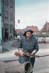 | Keywords: freedomfighter ww2 copenhagen denmark soldier sub-machine gun submachinegun outdoor vehicle bike motorcycle Photo: Jørgen Nielsen. More images from The Museum of Danish Resistance: erez.natmus.dk/FHMbilleder/Site/index.jsp Photo: Jørgen Nielsen. More images from The Museum of Danish Resistance: erez.natmus.dk/FHMbilleder/Site/index.jsp |