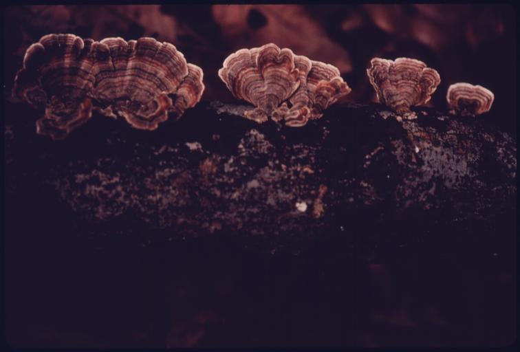 Keywords: A FUNGUS CALLED TURKEY TAIL (POLYPORUS VERSICOLOUR) GROWS ON A DECAYING LOG ALONG THE TRAIL TO STUMPY BASIN... - NARA - 558081.jpg Scope and content General notes 558081 Local identifier 412-DA-15631 Environmental Protection Agency 12/02/1970 - NARA-Author Aleksandrowicz Frank J Frank John 1921- Photographer 8452210 <br /> Peninsula Summit county Ohio United States North and Central America inhabited place 3370259 41 233 -81 55 <br /> Still Picture Records Section Special Media Archives Services Division NWCS-S National Archives at College Park 8601 Adelphi Road College Park MD 20740-6001 09/1975 Record group Record Group 412 Records of the Environmental Protection Agency 1944 - 2006 Record group ARC 708 DOCUMERICA The Environmental Protection Agency's Program to Photographically Document Subjects of Environmental Concern compiled 1972 - 1977 Series ARC 542493 File unit File unit ARC Variant control numbers Agency-Assigned Identifier 261/31/015631<br /> NAIL Control Number NWDNS-412-DA-15631 Other versions <gallery> File A_FUNGUS_CALLED_TURKEY_TAIL_ POLYPORUS_VERSICOLOUR _GROWS_ON_A_DECAYING_LOG_ALONG_THE_TRAIL_TO_STUMPY_BASIN _-_NARA_-_558081 tif tif File A_FUNGUS_CALLED_TURKEY_TAIL_ POLYPORUS_VERSICOLOUR _GROWS_ON_A_DECAYING_LOG_ALONG_THE_TRAIL_TO_STUMPY_BASIN _-_NARA_-_558081 jpg jpg </gallery> NARA-cooperation PD-USGov Trametes versicolor |