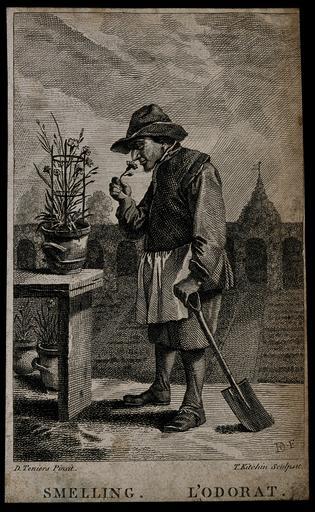 MAKE A MEME View Large Image A gardener smelling a flower; representing the sense of smel Wellcome V0007698.jpg Artwork Creator David Teniers II A gardener smelling a flower; representing the sense of smell Etching by T Kitchin after D Teniers <p>Iconographic ...