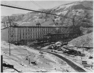 Keywords: A general view looking south across the west side, showing the Westmix concrete plant, placing trestles and crane... - NARA - 294226.jpg Scope and content Photograph from Volume Two of a series of photo albums documenting the construction of the Grand Coulee Dam and related work on the Columbia Basin Project General notes 294226 Local identifier Department of the Interior Bureau of Reclamation Engineering and Research Center 05/18/1981 - 03/04/1988 NARA's Rocky Mountain Region Denver NRGA Building 48 Denver Federal Center West 6th Avenue and Kipling Street Denver CO 80225-0307 1936-01-28 Record group Record Group 115 Records of the Bureau of Reclamation 1889 - 2008 Record group ARC 444 Photograph albums compiled 1903 - 1972 Series ARC 293611 File unit File unit ARC Variant control numbers NAIL Control Number NRG-115-CONSTPHO85006-COLBASIN2956 Other versions <gallery> File A general view looking south across the west side showing the Westmix concrete plant placing trestles and crane - NARA - 294226 tif tif </gallery> NARA-cooperation PD-USGov Construction of the Grand Coulee Dam Cranes Concrete plants |