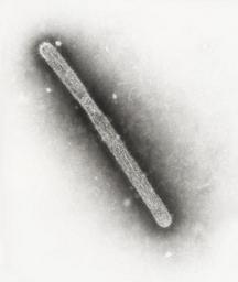| Keywords: A (H5N1) virion, a type of bird flu virus which is a subtype of avian influenza A.jpg  This transmission electron micrograph TEM taken at a magnification of 150 000x revealed the ultrastructural details of an avian influenza A H5N1 virion a type of bird flu virus which is a subtype of avian influenza A At this magnification one may note the stippled appearance of the roughened surface of the proteinaceous coat encasing the virion Photo Credit Cynthia Goldsmith/ Jackie Katz Copyright Restrictions None - This image is in the public domain and thus free of any copyright restrictions As a matter of courtesy we request that the content provider be credited and notified in any public or private usage of this image http //phil cdc gov/PHIL_Images/8036/8036_lores jpg Cynthia Goldsmith/ Jackie Katz PD-USGov H5N1 |