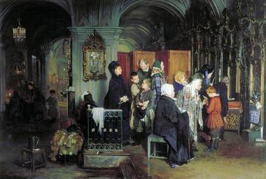 Keywords: A Korzukhin 27.jpg en Alexey Korzukhin 1835-1894 Before confession ru Алексей Иванович Ко зухин 1835-1894 Пе ед исповедью Изоб ажён инте ье икольского военно-мо ского собо а в Санкт-Пете бу ге Location Госуда ственная Т етьяковская гале ея <br> Dimensions 108x160 см <br> Web source http //www art-catalog ru/picture php id_picture 7853 <br> Technique Oil on canvas Creator Alexey Korzukhin 1877 Institution Tretyakov Gallery credit line Genre paintings by Alexey Korzukhin 19th-century genre paintings in the Tretyakov Gallery PD-old-100