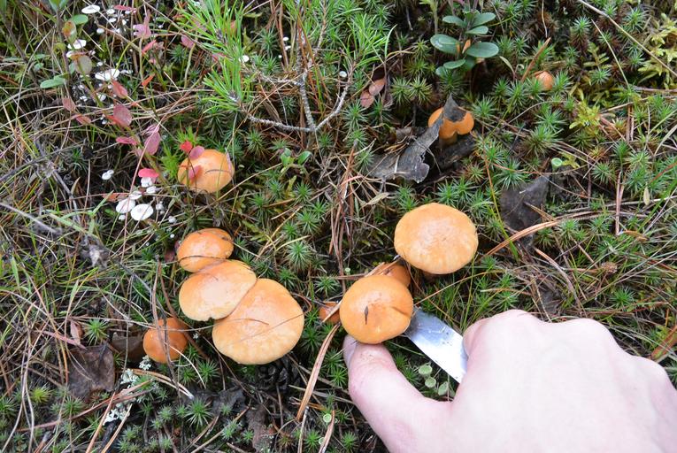 Keywords: a lot mushrooms delicious forest knife hand for gourmets fast berry nutrition autumn fruit stump leaves free photo