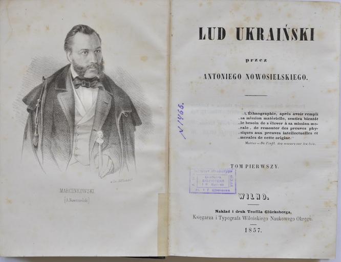 Keywords: A. Martsinkovskiy about ukrainian people 1639.jpg Антоні Альбе т а цінковський Люд ук аїнський Вільно 1857 Ф онтиспіс та титульний а куш З особистої бібліотеки І Ф анка Antony Martsinkovskiy about ukrainian people Vilnius 1857 Frontispiece and title page From I Franko personal Library 1857 Institution Shevchenko Institute of Literature Digital Collection PD-old-70-1923 1857 book covers Franko Personal Library Libraries in Ukraine Collections of books in libraries in Ukraine Uploaded with VicuñaUploader