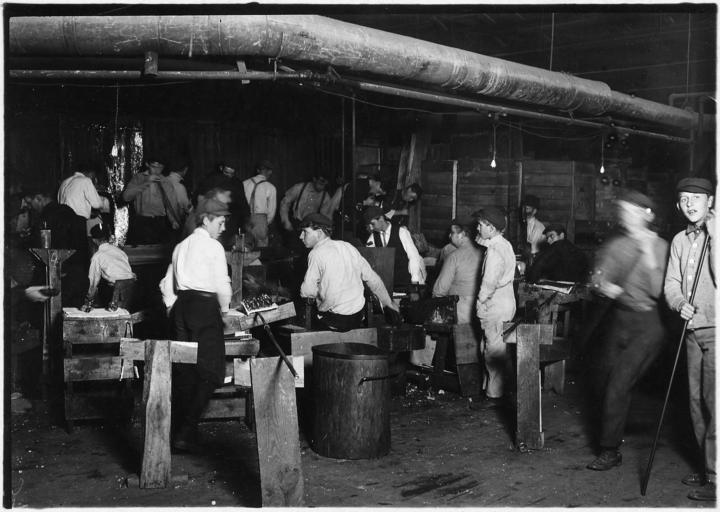 | Keywords: nara:arcid=523234 u.s. national archives usnationalarchives lewis hine lewishine child labor childlabor working conditions workingconditions factory national child labor committee nationalchildlaborcommittee 1909 blackandwhite monochrome black and white Original Caption: A midnight scene in More-Jonas Works. See small snapper up boy in left of photo. Bridgeton, N.J., November 1909 U.S. National Archives’ Local Identifier: 102-LH-982 Photographer: Hine, Lewis Subjects: Child Labor National Child Labor Committee Working Conditions Factory Persistent URL: research.archives.gov/description/523234 Repository: Still Picture Records Section, Special Media Archives Services Division (NWCS-S), National Archives at College Park, 8601 Adelphi Road, College Park, MD, 20740-6001. For information about ordering reproductions of photographs held by the Still Picture Unit, visit: www.archives.gov/research/order/still-pictures.html Reproductions may be ordered via an independent vendor. NARA maintains a list of vendors at www.archives.gov/research/order/vendors-photos-maps-dc.html Access Restrictions: Unrestricted Use Restrictions: Unrestricted Original Caption: A midnight scene in More-Jonas Works. See small snapper up boy in left of photo. Bridgeton, N.J., November 1909 U.S. National Archives’ Local Identifier: 102-LH-982 Photographer: Hine, Lewis Subjects: Child Labor National Child Labor Committee Working Conditions Factory Persistent URL: research.archives.gov/description/523234 Repository: Still Picture Records Section, Special Media Archives Services Division (NWCS-S), National Archives at College Park, 8601 Adelphi Road, College Park, MD, 20740-6001. For information about ordering reproductions of photographs held by the Still Picture Unit, visit: www.archives.gov/research/order/still-pictures.html Reproductions may be ordered via an independent vendor. NARA maintains a list of vendors at www.archives.gov/research/order/vendors-photos-maps-dc.html Access Restrictions: Unrestricted Use Restrictions: Unrestricted |