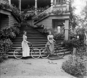 | Keywords: A. Mikhalkova and N. Khlebnikova with bicycles at the stairs at home in the estate Petrovskoe.JPG A Mikhalkova and N Khlebnikova with bicycles at the stairs at home in the estate Petrovskoe А В ихалкова и И Хлебникова с велосипедами у лестницы дома в усадьбе Пет овское Рыбинский музей-заповедник runivers ru http //new runivers ru/gallery/photogallery/photo/51323/original/ 1880-1890 author PD-old-100 PD-RusEmpire Photographs in Rybinsk Museum-Preserve Petrovskoe Rybinsk House of Mikhalkov Females with bicycles Old photo of Rybinsk |
