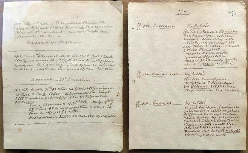 Keywords: A.N.Goncharov's diary (August 27, 1812).jpg Дневник А Гонча ова за 1811-1812 год В ве хней части листа - запись о ождении 27 августа 1812 года Гонча овой Пушкиной Единственное свидетельство о её ождении own 2015 user shakko User Shakko/Credit Polotnyaniy Zavod Natalia Pushkina Uploaded by Shakko/Photos 1812 documents Afanasiy Nikolaevich Goncharov PD-old |