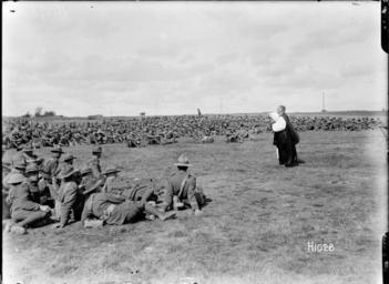 Keywords: the great war thegreatwar great war greatwar world war one worldwarone world war i worldwari wwi first world war firstworldwar new zealand expeditionary force newzealandexpeditionaryforce nzef soldiers mass sapignes blackandwhite monochrome outdoor photo border black and white A priest speaking to soldiers, who are sitting on the ground, at a New Zealand Brigade church service in Sapignies, France, during World War I. Photograph taken 8 September 1918 by Henry Armytage Sanders. Inscriptions: Inscribed - Photographer's title on negative -bottom right: H1028. Quantity: 1 b&w original negative(s). Physical Description: Dry plate glass negative 4 x 5 inches A New Zealand Brigade church service in France, World War I. Royal New Zealand Returned and Services' Association :New Zealand official negatives, World War 1914-1918. Ref: 1/2-013593-G. Alexander Turnbull Library, Wellington, New Zealand. natlib.govt.nz/records/22793040 A priest speaking to soldiers, who are sitting on the ground, at a New Zealand Brigade church service in Sapignies, France, during World War I. Photograph taken 8 September 1918 by Henry Armytage Sanders. Inscriptions: Inscribed - Photographer's title on negative -bottom right: H1028. Quantity: 1 b&w original negative(s). Physical Description: Dry plate glass negative 4 x 5 inches A New Zealand Brigade church service in France, World War I. Royal New Zealand Returned and Services' Association :New Zealand official negatives, World War 1914-1918. Ref: 1/2-013593-G. Alexander Turnbull Library, Wellington, New Zealand. natlib.govt.nz/records/22793040 |