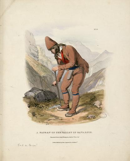 | Keywords: A Paysan of the Valley of Gavarnie - Fonds Ancely - B315556101 A HARDING 048.jpg The work will be published in six parts each containing five plates Price of each part twelve shillings Ancely René 1876 - 1966 Possesseur eng public domain domaine public B315556101_A_HARDING_048 jpg image/jpeg 1 f de pl lithogr en coul ; 31 cm Johnson J Illustrateur Hullmandel Charles Joseph 1789-1850 Lithographe Carpenter James 17 -18 ; libraire-relieur Editeur http //numerique bibliotheque toulouse fr/collect/general/index/assoc//ark /74899/B315556101_A_HARDING_048 dir/B315556101_A_HARDING_048 jpg Bibliothèque municipale de Toulouse A-HARDING 13 Creator James Duffield Harding http //catalogues toulouse fr/web2/tramp2 exe/do_keyword_search/log_in setting_key BMT1 servers 1home query p000935 vignette http //numerique bibliotheque toulouse fr/collect/general/index/assoc//ark /74899/B315556101_A_HARDING_048 dir/B315556101_A_HARDING_048_thumb jpeg between 1830 1832 A Paysan of the Valley of Gavarnie B315556101_A_HARDING_048 lithography - print - colors - color lithograph Agricultural machines History of clothing Vests Gaiters French national costumes Clogs in art Scythes in art Peasants in art Gavarnie Mountains in art National costumes in art Rocks in art Men in art Jackets Trails People with tuques in art James Duffield Harding |
