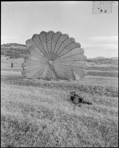 | Keywords: A Republic of Korea paratrooper deflates his parachute following a "three point landing" during a mass paradrop... - NARA - 542278.tif Scope and content General notes 542278 Local identifier 342-AF-85152AC Department of Defense Department of the Air Force 09/26/1947 - Still Picture Records Section Special Media Archives Services Division NWCS-S National Archives at College Park 8601 Adelphi Road College Park MD 20740-6001 1953-11-18 Record group Record Group 342 Records of U S Air Force Commands Activities and Organizations 1900 - 2003 Record group ARC 654 Black and White Photographs of U S Air Force and Predecessors' Activities Facilities and Personnel Domestic and Foreign compiled 1930 - 1975 documenting the period 1863 - 1975 Series ARC 542185 File unit File unit ARC Variant control numbers Agency-Assigned Identifier NASM 4A 39340<br /> NAIL Control Number NWDNS-342-AF-85152AC yes Other versions NARA-cooperation PD-USGov 1953 in Korea Korean War Paratroopers |