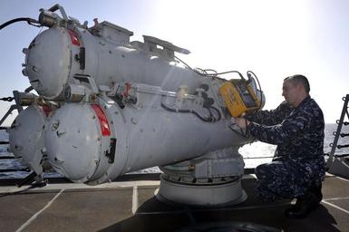| Keywords: A Sailor works on a torpedo tube at sea. (8498335738).jpg U S 5TH FLEET AREA OF RESPONSIBILITY Feb 16 2013 Sonar Technician Surface 1st Class Andrew Sorenson attaches a torpedo tester to a MK 32 surface vessel torpedo tube during maintenance aboard the guided-missile destroyer USS Jason Dunham DDG 109 Jason Dunham is deployed with the John C Stennis Carrier Strike Group to the U S 5th Fleet area of responsibility conducting maritime security operations theater security cooperation efforts and support missions for Operation Enduring Freedom U S Navy photo by Mass Communication Specialist 2nd Class Deven B King/Released 130216-N-XQ375-003 Join the conversation http //www facebook com/USNavy www facebook com/USNavy http //www twitter com/USNavy www twitter com/USNavy http //navylive dodlive mil navylive dodlive mil https //www flickr com/photos/usnavy/8498335738/ A Sailor works on a torpedo tube at sea 2013-02-22 11 24 https //www flickr com/people/56594044 N06 Official U S Navy Page from United States of America PD-USNavy Official U S Navy Imagery https //flickr com/photos/56594044 N06/8498335738 2016-12-14 01 05 52 United States Government Work Jason Dunham Naval ships of the United States Files from the U S Navy Flickr stream Files uploaded by Reguyla United States Navy |