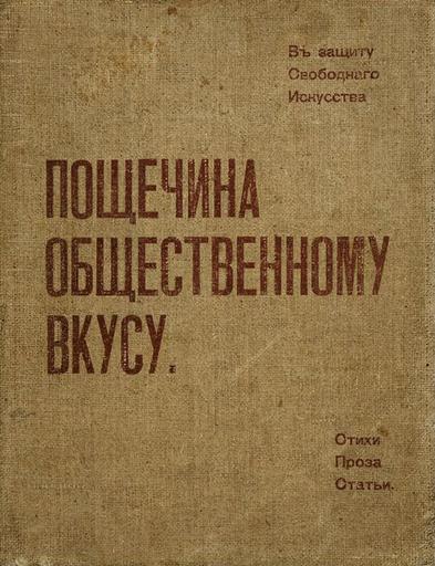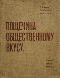 | Keywords: A Slap in the Face of Public Taste.jpg Cover of Russian Futurists' book A Slap in the Face of Public Taste 1912 Обложка футу истского сбо ника Пощёчина общественному вкусу 1912 http //www hlebnikov ru/biography/1912/4 htm 1912 Books from Russia 1912 Book covers from Russia Velimir Khlebnikov David Burliuk Books by Vladimir Mayakovsky Aleksei Kruchenykh 1912 book covers Canvas PD-old | ||||