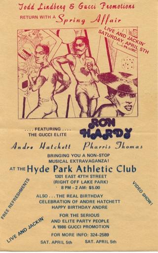 Keywords: todd lindberg toddlindberg gucci promotions guccipromotions ron hardy ronhardy andre hatchett andrehatchett pharris thomas pharristhomas hyde park athletic club hydeparkathleticclub chicago house music chicagohousemusic Todd Lindberg & Gucci Promotions RETURN WITH A Spring Affair LIVE AND JACKIN' SATURDAY, APRIL 5TH .... FEATURING .... THE GUCCI ELITE RON HARDY Andre Hatchett Pharris Thomas BRINGING YOU A NON-STOP MUSICAL EXTRAVAGANZA! AT THE Hyde Park Athletic Club 1301 EAST 47TH STREET (RIGHT OFF LAKE PARK) 8 PM – 2AM: $5.00 ALSO ... THE REAL BIRTHDAY CELEBRATION OF ANDRE HATCHETT HAPPY BIRTHDAY ANDRE FOR THE SERIOUS AND ELITE PARTY PEOPLE A 1986 GUCCI PROMOTION FOR MORE INFO: 324-2589 SAT. APRIL 5TH SAT. APRIL 5TH FREE REFRESHMENTS LIVE AND JACKIN' VIDEO SHOW! Todd Lindberg & Gucci Promotions RETURN WITH A Spring Affair LIVE AND JACKIN' SATURDAY, APRIL 5TH .... FEATURING .... THE GUCCI ELITE RON HARDY Andre Hatchett Pharris Thomas BRINGING YOU A NON-STOP MUSICAL EXTRAVAGANZA! AT THE Hyde Park Athletic Club 1301 EAST 47TH STREET (RIGHT OFF LAKE PARK) 8 PM – 2AM: $5.00 ALSO ... THE REAL BIRTHDAY CELEBRATION OF ANDRE HATCHETT HAPPY BIRTHDAY ANDRE FOR THE SERIOUS AND ELITE PARTY PEOPLE A 1986 GUCCI PROMOTION FOR MORE INFO: 324-2589 SAT. APRIL 5TH SAT. APRIL 5TH FREE REFRESHMENTS LIVE AND JACKIN' VIDEO SHOW! |