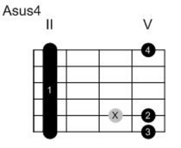 Keywords: A-sus-4 Barré.jpg Eigenanfertigung 2005-12-01 own assumed Red Rooster Guitar chords in standard tuning