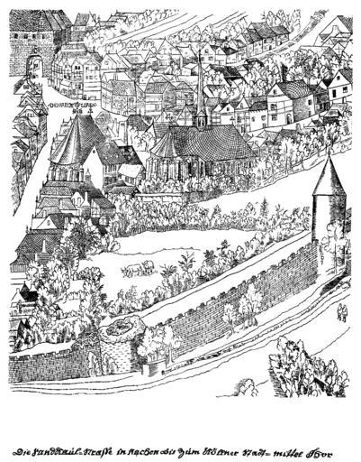 | Keywords: Aachen-Einzelbilder-1566-Blatt-11.png en Sandkaul street in Aachen up to the Kölnmitteltor de Die Sandkaulstraße in Aachen bis zum Kölnmitteltor One of the four remaining engravings of probably originally twelve partial sheets of a city view Einer der vier erhaltenen Kupferstiche von ursprünglich vermutlich zwölf Teilblättern einer Stadtansicht http //stadtgeschichte isl rwth-aachen de/wiki/Datei Einzelbilder-1566-Batt-11 jpg anonymus 1566 copyright expired PD-Art-100 Historical views of Aachen Sandkaulstraße |