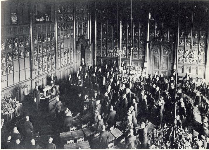 | Keywords: Aatelissääty1906.jpg fi Suomen aatelissääty viimeisessa istunnossaan Helsingin ritarihuoneella; Maamarsalkka Viktor Magnus von Born pitää päättäjäispuhetta en The last meeting of Finnish noble estate in Ritarihuone; Lord Marshal Viktor Magnus von Born speaking 1906-09-08 Leo Mechelin 1839 “1914 Helsingin herra valtiollinen vaikuttaja ja Suomi-kuvan luoja Helsinki City Museum Helsinki 1989; s 83 Atelier Apollo Karl Emil StÃ¥hlberg 1862 “1919 PD-old Uploaded with UploadWizard Diet of Finland Interior of Ritarihuone Viktor Magnus von Born Groups of people in Finland Group photographs 20th-century people of Finland |
