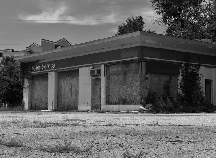 Keywords: abandoned gas station gas gasoline cars automobiles fuel closed