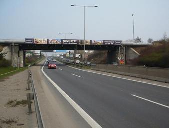 | Keywords: Abandoned railway bridge over E65 in Prague.jpg cs Most někdejší vlečky z nádraží Praha-Hostivař do areálu Depa Hostivař Na mostě stále bylo štěrkové lože a pražce koleje však již byly sneseny Svodidla v levé dolní části snímku měl podle dřívějších plánů nahradit sjezd z Jižní spojky na zatím nerealizovanou čtyřproudovou silnici do Libně 2009-04-05 own JanSuchy 50 4 5 216 N 14 31 23 645 E heading E cc-zero Uploaded with UploadWizard Industrial sidings in Prague Jižní spojka Hostivař Finep Railway bridges in Hostivař |