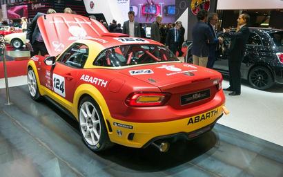 | Keywords: abarth 124 spider 86th geneva international motor show 2016 86 salon automobile genève cars race car vehicle car auto racing sport sports car Abarth s'est occupé de la Fiat 124 Spider pour lui donner un look très sportif associé à un 1.4 Multiair turbo de 170 chevaux synonyme d'un 0 à 100 km/h abattu en 6,8 secondes. Abarth n'aura pas attendu longtemps avant de dégainer sa version musclée de la 124 Spider. Fiat lui avait réservé une première mondiale en novembre dernier dans le cadre du Salon de Los Angeles. Abarth transfigure l'allure de ce modèle en lui greffant des boucliers sportifs et un capot noir. Posée sur des jantes de 17 pouces renfermant des freins Brembo, cette 124 Spider arbore au niveau de la poupe un petit aileron et deux doubles sorties d'échappement. Abarth s'est occupé de la Fiat 124 Spider pour lui donner un look très sportif associé à un 1.4 Multiair turbo de 170 chevaux synonyme d'un 0 à 100 km/h abattu en 6,8 secondes. Abarth n'aura pas attendu longtemps avant de dégainer sa version musclée de la 124 Spider. Fiat lui avait réservé une première mondiale en novembre dernier dans le cadre du Salon de Los Angeles. Abarth transfigure l'allure de ce modèle en lui greffant des boucliers sportifs et un capot noir. Posée sur des jantes de 17 pouces renfermant des freins Brembo, cette 124 Spider arbore au niveau de la poupe un petit aileron et deux doubles sorties d'échappement. |
