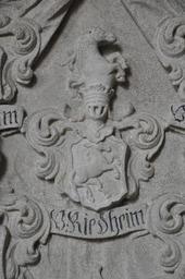Keywords: Abenberg St Jakob Epitaph 4b.jpg Abenberg Kath Pfarrkirche St Jakob Epitaph für ein Kind des Burgpflegers Alois Freiherr von Riedheim 1752 Wappen Riedheim own own photograph 2015-07 Photo Andreas Praefcke Photos by User AndreasPraefcke Wall mounted church monuments in St Jakob Abenberg Reliefs of coats of arms in Abenberg Coats of arms of Riedheim family |