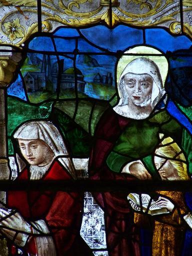 Keywords: Ablis - détail vitrail nord.jpg en Church of Ablis Yvelines France Detail of the northern stained glass window bottom right part From left to right A patron Saint Anne the Virgin Mary child The inscription below this part of the window states BEATAE MARIAE VIRGINI INFANTIAE SANCTAE Mid XVIth century window restored in 1874 by N Lorin fr Église d'Ablis Yvelines France Détail du vitrail nord partie basse de la lancette de droite De gauche à droite une donatrice Sainte Anne la Vierge Marie enfant L'inscription en bas de la lancette est la suivante BEATAE MARIAE VIRGINI INFANTIAE SANCTAE Vitrail du milieu du XVIe siècle restaurée par N Lorin en 1874 own Florestan <gallery>Image Ablis - verrière hagiographique jpg Full window</gallery> 48 30 57 59 N 1 50 08 97 E heading N PD-old ImageNote 1 121 1438 610 560 2270 3023 2 An unidentified patron ImageNoteEnd 1 ImageNote 2 1286 550 716 954 2270 3023 2 Saint Anne ImageNoteEnd 2 ImageNote 3 1609 1726 605 848 2270 3023 2 The Virgin Mary as a child ImageNoteEnd 3 Stained glass windows in église Saint-Pierre-Saint-Paul d'Ablis Renaissance stained glass windows in France Education of the Virgin Mary on stained glass windows Stained glass windows with signature of Nicolas Lorin 16th-century stained glass windows in France |
