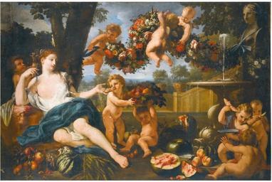 | Keywords: Abraham Brueghel, Guillaume Courtois - Ceres at a fountain, attended by putti.jpg  Artwork Creator Abraham Brueghel and Creator Guillaume Courtois en Ceres at a fountain attended by putti 1665-1675 http //www sothebys com/en/auctions/ecatalogue/2012/old-master-british-paintings-day-sale-l12037/lot 179 lotnum html Oil canvas size cm 177 255 object history credit line Sold at Sotheby's on 6 December 2012 in London lot 179 accession number PD-old-100 PD-old-100 Abraham Brueghel Guillaume Courtois 17th-century still life paintings of fruits Humans with putti 17th-century still life paintings of flowers Paintings of Ceres Oil still life paintings 17th-century oil on canvas paintings |