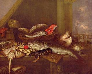 | Keywords: Abraham Hendriksz. van Beyeren 001.jpg Artwork Creator Abraham Hendriksz van Beyeren c 1650 oil canvas cm 125 153 Institution Gemäldegalerie Alte Meister Dresden accession number object history credit line Still life The Yorck Project 10 000 Meisterwerke der Malerei DVD-ROM 2002 ISBN 3936122202 Distributed by DIRECTMEDIA Publishing GmbH http //mail wikipedia org/pipermail/wikide-l/2005-April/012195 html PD-old-100 PD-Art-YorckProject DEFAULTSORT Beijeren Fischbank Baroque still life paintings of seafood Baroque still life paintings in Germany Dutch paintings in the Gemäldegalerie Alte Meister Dresden Still life paintings by Abraham van Beijeren Fischbank 1650 17th-century still life paintings in Germany 1650s still life paintings 1650s paintings in Germany Paintings of fish markets Paintings of baskets |