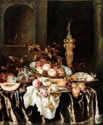 Keywords: Abraham van Beyeren, A Banquet Still Life with Roses, San Antonio Museum of Art.jpg en A Banquet Still Life with Roses by Abraham van Beyeren circa 1665 Oil on canvas San Antonio Museum of Art San Antonio Museum of Art Abraham van Beyeren 1665 Paintings in the San Antonio Museum of Art Beyeren Baroque still life paintings of food Still life paintings by Abraham van Beijeren 1665 1660s still life paintings PD-Art |