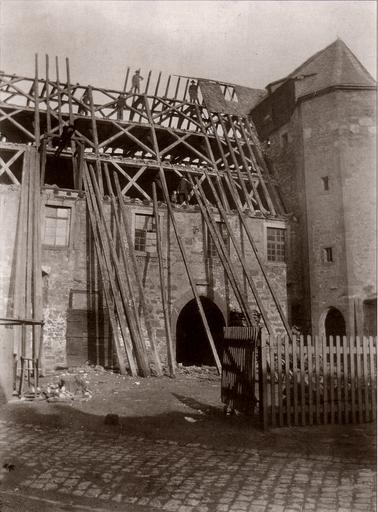 Keywords: Abriss Zehnthof Höchst 1893.jpg Abriß des Höchster Zehnthofes im März 1893 Rechts im Bild der heute noch erhaltene Treppenturm Demolition of the old Tithe Court in Frankfurt-Höchst in March 1893 Only the staircase tower on the right side remained Source Archiv Höchster Geschichtsverein Author unknown Date 1893 Permission PD-old Other versions of this file unknown Das Bild steht in Bezug zu Image Treppenturm Zehnthof Frankfurt Höchst 2 jpg das den Treppenturm heute zeigt The image is related to Image Treppenturm Zehnthof Frankfurt Höchst 2 jpg that shows the staircase tower today PD-old March 1893 Black and white photographs of Frankfurt-Höchst Tithe barns in Hesse Höchster Markt Demolished buildings in Frankfurt-Höchst 1893 in Frankfurt am Main 1893 |