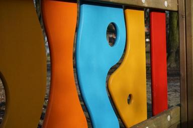 Keywords: abstract pattern fence wooden wall colorful color yellow blue
