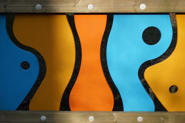 Keywords: abstract pattern fence wooden wall colorful color yellow blue