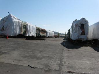 Keywords: ABunchOfPCCsAtMarinDivisionOneBurnOneTiredOneImported.jpg en A bunch of retired PCCs at Marin Division The three covered ones are 1158 1168 and 151 The charred PCC is 1009 Own 2007-10-28 Goodshoped35110s F Market Wharves PCC type tramcars San Francisco Municipal Railway Historic Fleet |